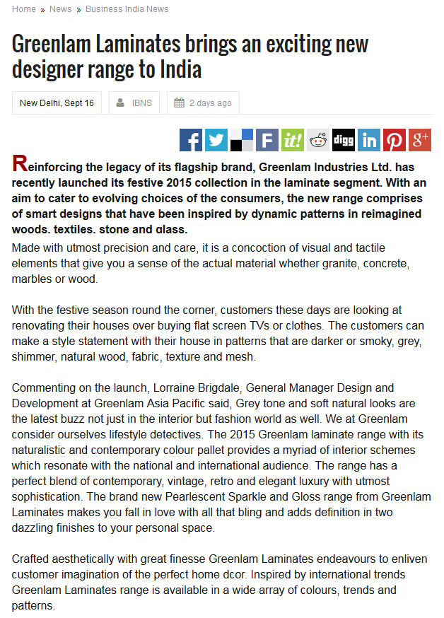 Greenlam Laminates-New Designer Range To India
